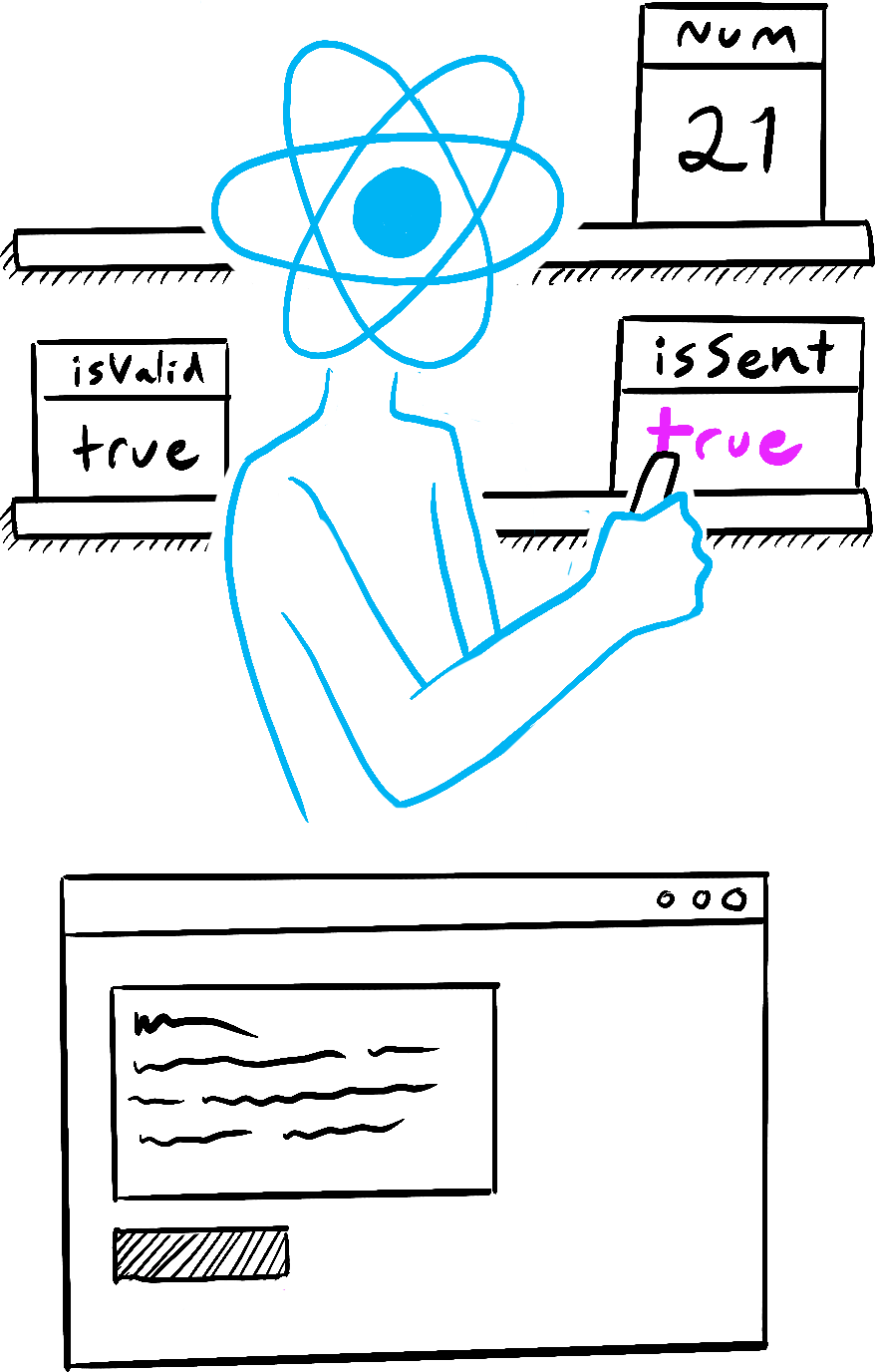 import { useState } from 'react'; export default function Form() { const [isSent, setIsSent] = useState(false); const [message, setMessage] = useState('Olá!'); if (isSent) { return <h1>Sua mensagem está a caminho!</h1> } return ( <form onSubmit={(e) => { e.preventDefault(); setIsSent(true); sendMessage(message); }}> <textarea placeholder="Message" value={message} onChange={e => setMessage(e.target.value)} /> <button type="submit">Enviar</button> </form> ); } function sendMessage(message) { // ... }